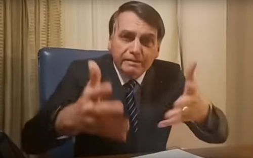 En el video, de casi 24 minutos, Bolsonaro sacude las manos, se pone los lentes, los tira, grita y trata de recuperar la calma cuando se le corta el habla.