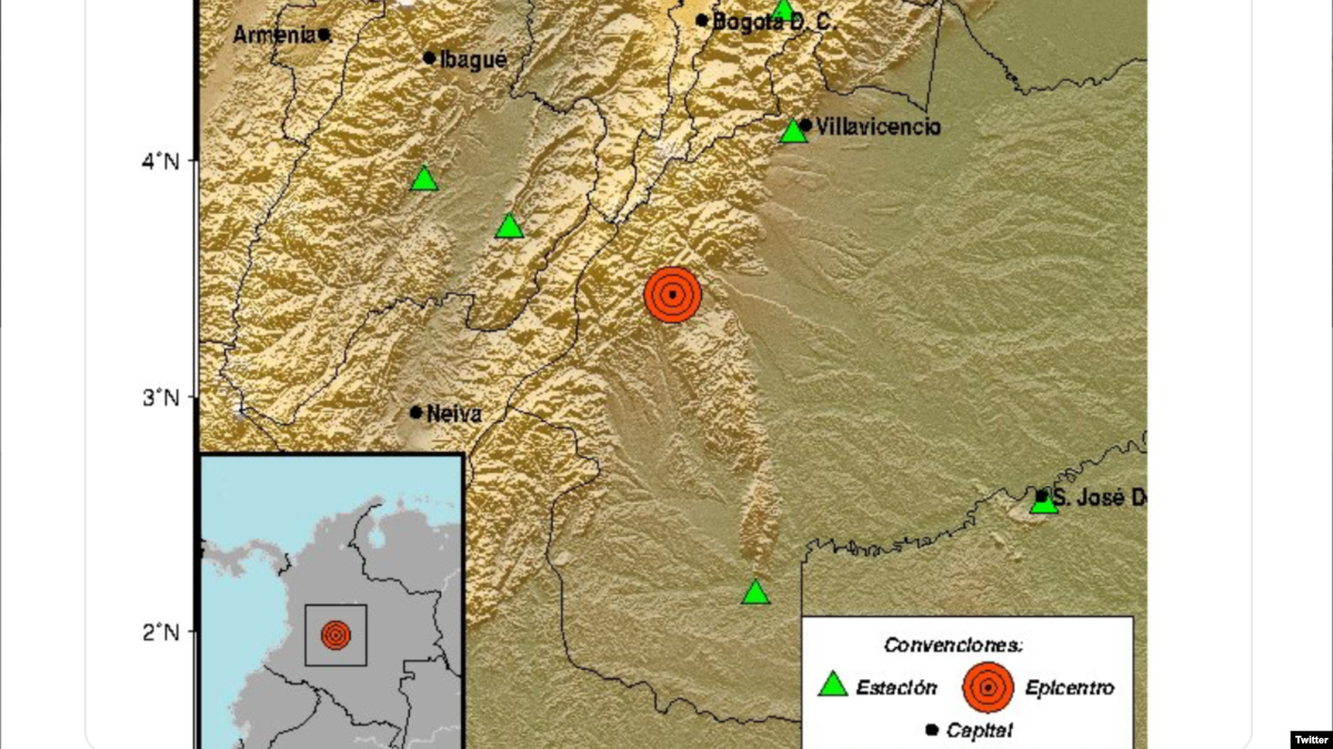 Según el Servicio Geológico Colombiano, el primer temblor – registrado a las 2 de la tarde, hora local – tuvo una magnitud de 6,2 grados; el epicentro se registró entre los municipios de Lejanías, Mesetas y San Juan de Arana, en la región del Ariari, del departamento del Meta.