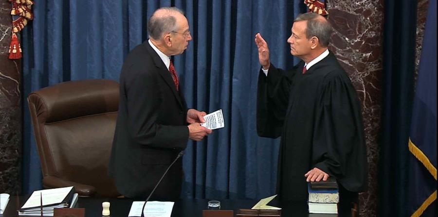 De acuerdo con la Constitución, el ministro presidente del Tribunal Supremo de Estados Unidos debe presidir el juicio político. Roberts, que tan sólo tuvo que cruzar la calle para llegar al Capitolio, ha insistido desde hace tiempo en que los jueces son apolíticos y se prevé que funja como un árbitro en el procedimiento. Los senadores se levantaron rápidamente cuando apareció con su túnica negra.