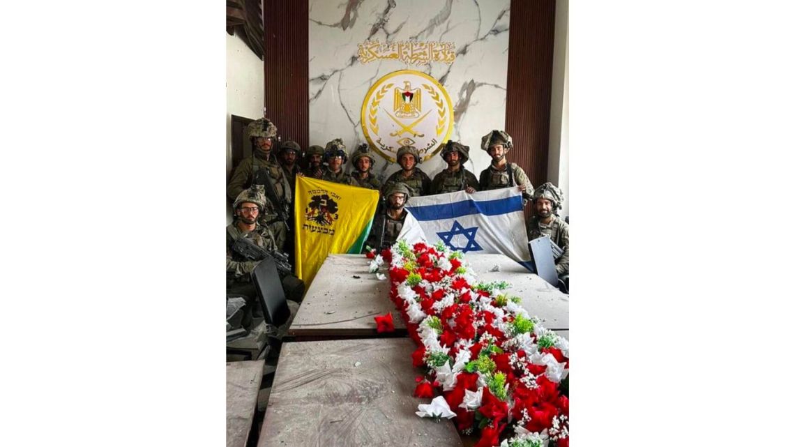 Las fuerzas de la Brigada Golani de las Fuerzas de Defensa de Israel lograron tomar el edificio del Parlamento en la ciudad de Gaza, según una imagen que circula en las redes sociales, donde se muestra a miembros del ejército posando en el lugar con banderas israelíes.